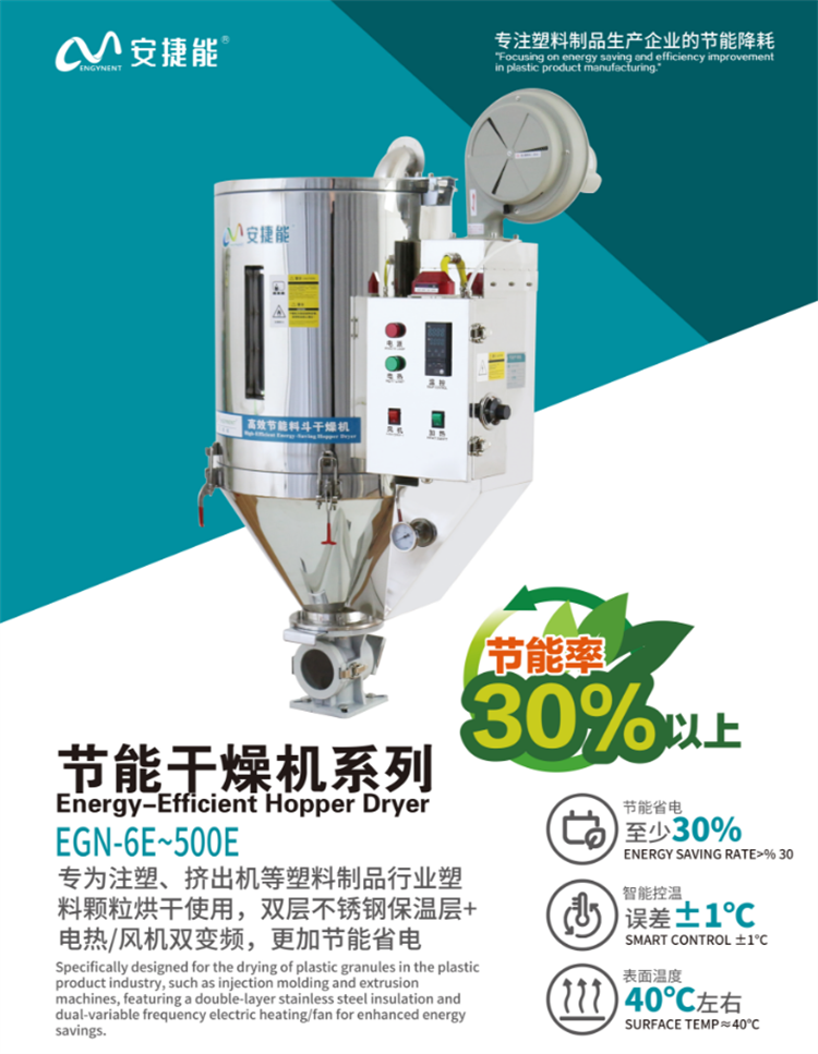 1.节能塑料干燥机:采用智能温控与热循环技术,能耗降低30%以上,助力企业实现绿色生产。