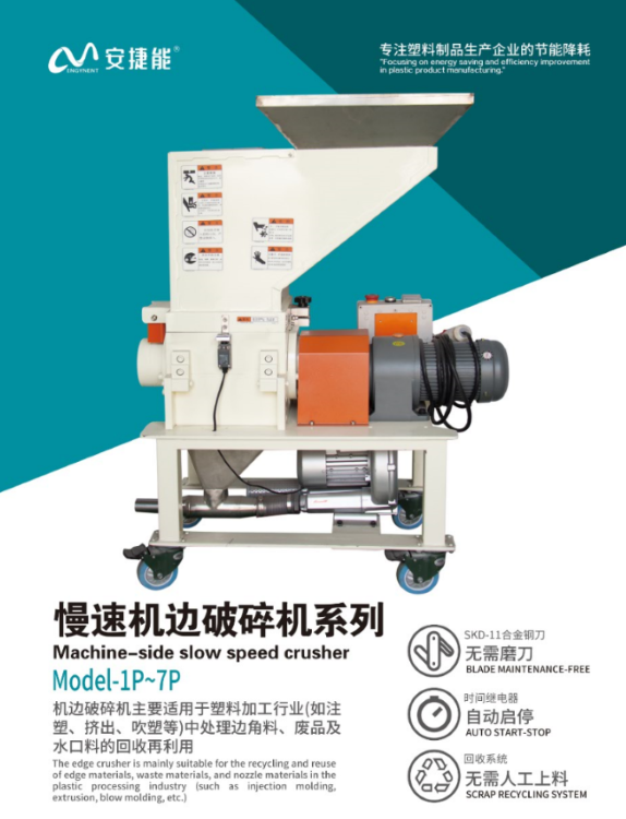 高效回收利器:专为PC、ABS等硬质水口料设计,无筛网结构确保碎料均匀,原料利用率提升至95%。